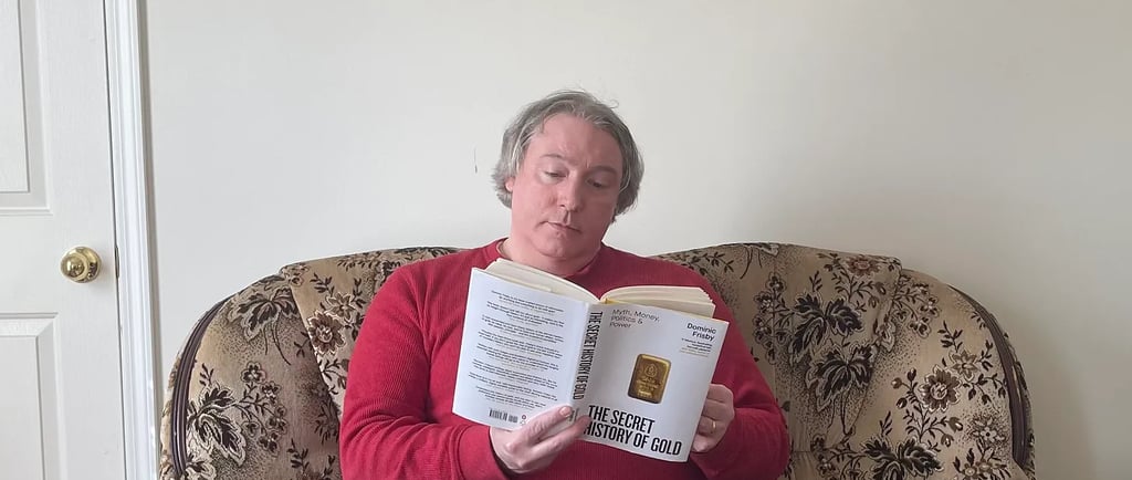 This is the gist of Dominic Frisby’s The Secret History of Gold: Myth, Money, Politics & Power (2025). Officially the book is not distributed in the United States until May 5th, 2026, but through EBay I was able to purchase a copy beforehand. This is the second book of Mr. Frisby which I read, the first being Daylight Robbery (2019), and this latest work impresses me no less. The multitalented Mr. Frisby – whose ukelele is even mightier than his pen – recounts gold’s role through the ages in a way which is refreshingly entertaining.